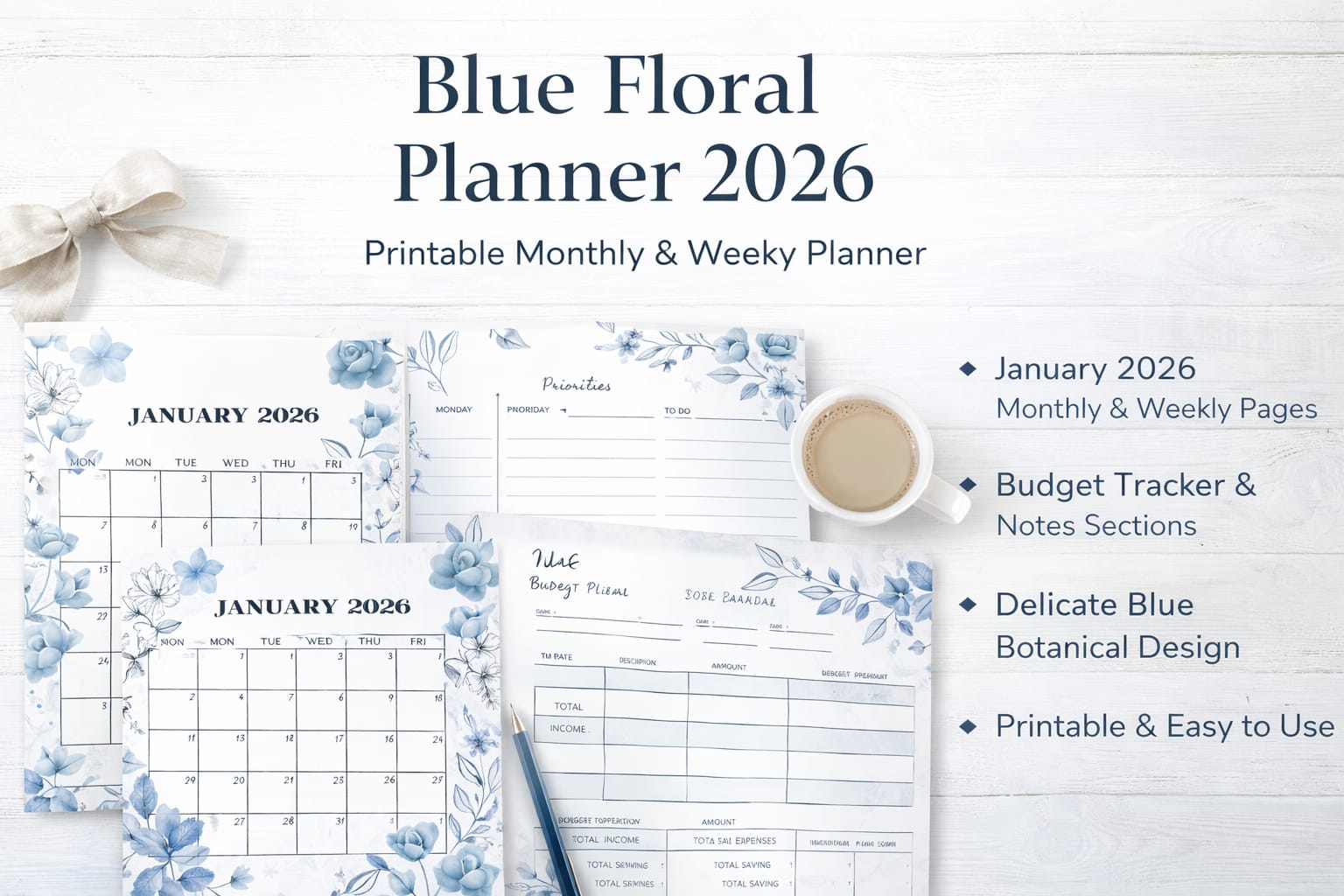 This Blue Floral January 2026 Planner is designed to help you plan your days, manage your budget, and stay focusedâall in a calm, elegant botanical style.